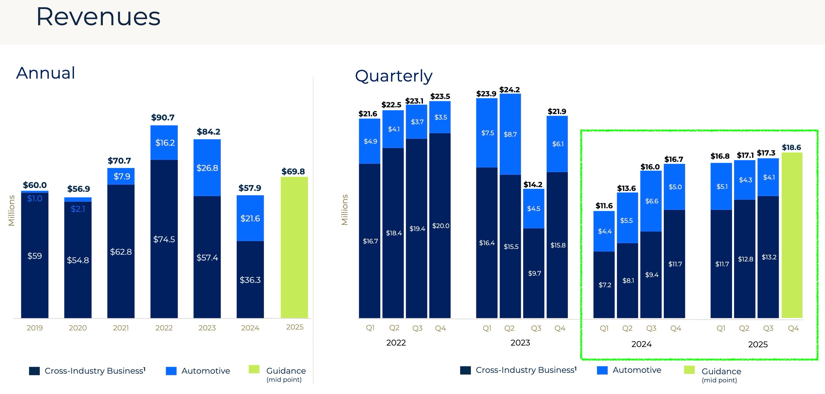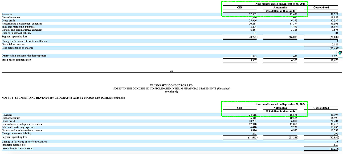 While the company is often pitched as an Automotive AI play, the filing reveals that Automotive revenue actually declined year-over-year for the 9-month period (from $16.6M in 2024 to $13.4M in 2025). The entire revenue growth of the company is currently being driven by the Cross Industry Business (CIB) segment, which grew back ~53% ($24.6M to $37.8M).
