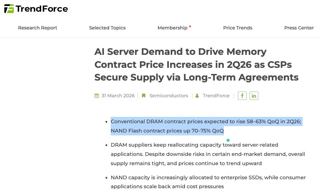 90% of DRAM is sold as contracts and the contract prices is what actually matters.