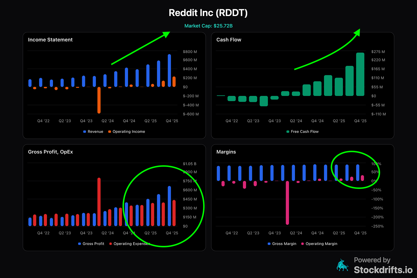 It’s showing early signs of Operating leverage. Expenses are not lifting off as fast as the profits are. This is a sign of a great business. Ofcourse the margins and cash flow is seeing a lift as well