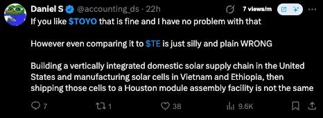 Conclusion: Even the American Solar TOP DAWG is doing exactly what TOYO is doing and aiming to be only 70% American by the end of 2027