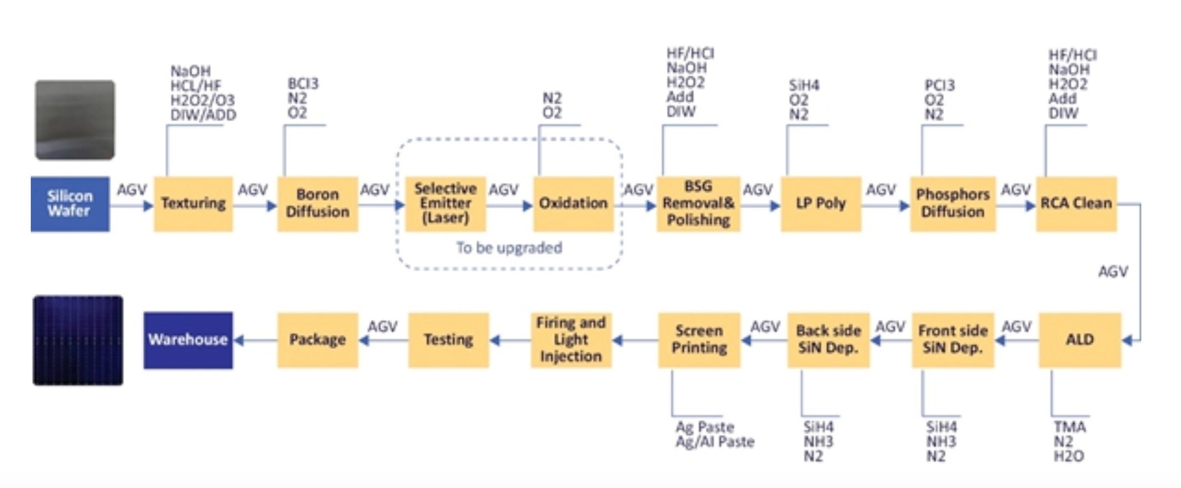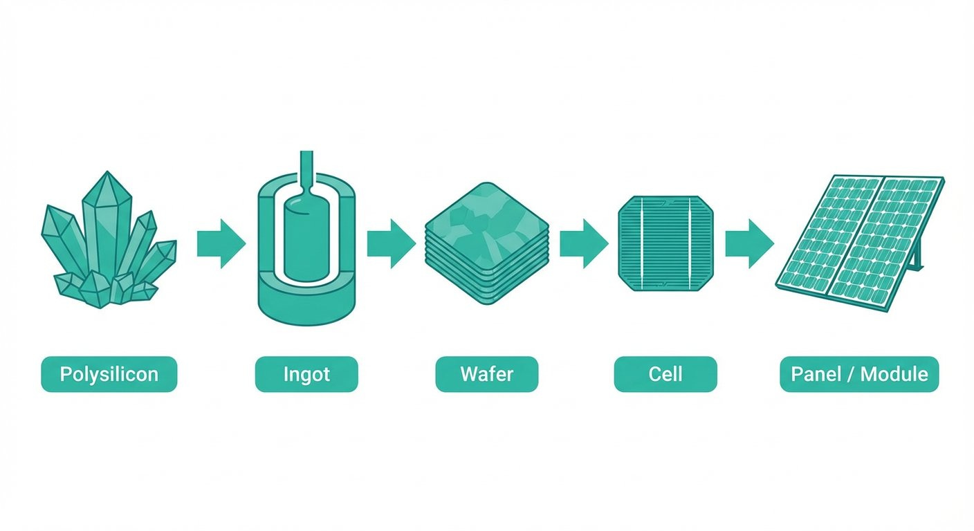 Okay, lets look at the supply chain that exists. 5 steps to get to that sweet sweet Solar Panel