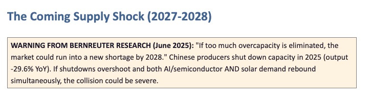 Lets see if this really comes through in 2027-2028. However, it did happen that a lot of Chinese supply shut down and Polysilicon prices bounced up ~30-50% up.