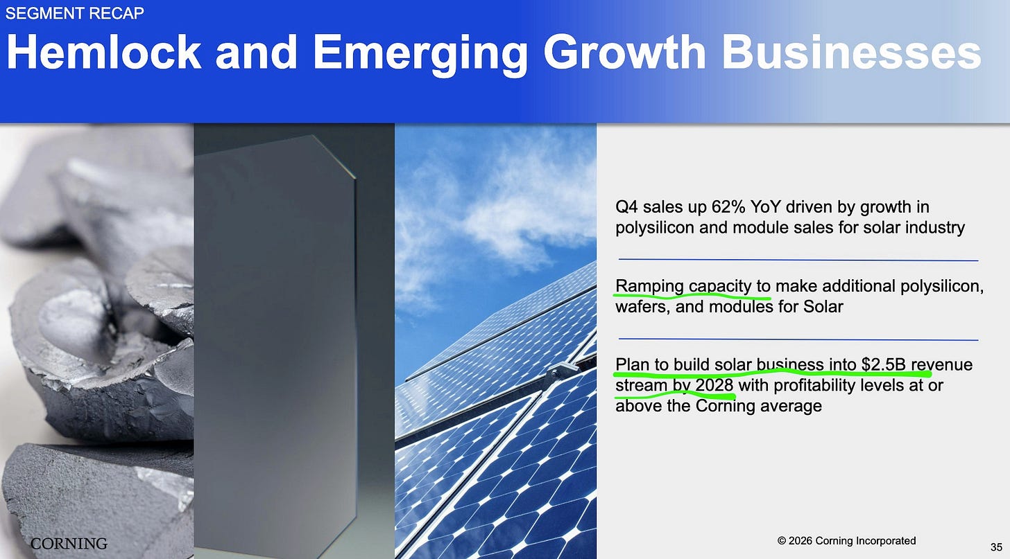 It is also an indication that the demand is through the roof for Polysilicon if GLW is planning to exponentially increase their Solar revenue.