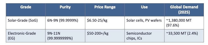 Keep in mind that Polysilicon is also required for semi conductors. Albeit the grade gotta be much purer than solar. 98% of Polysilicon is used for Solar